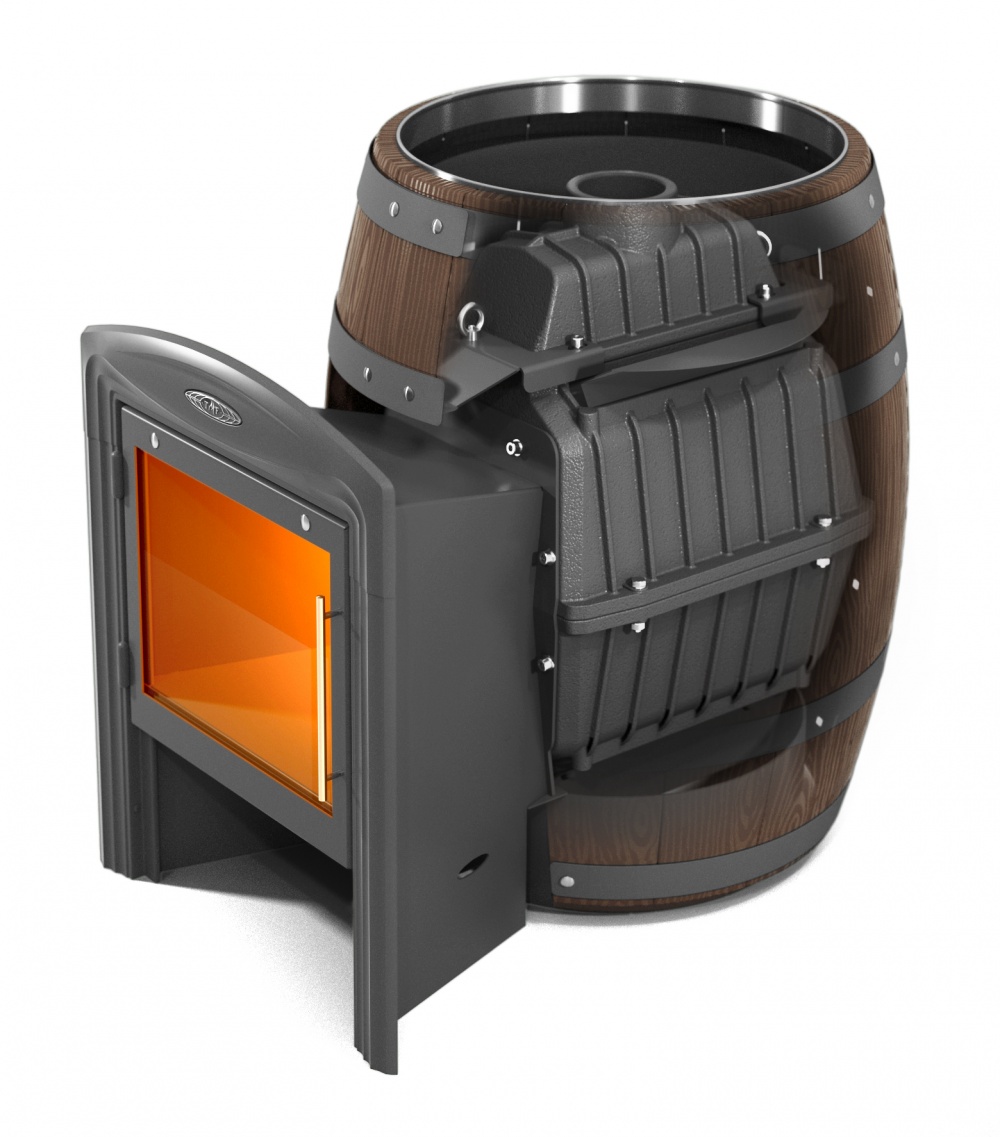 «Вариата Чугун Баррель» - первая банная печь-бочка TMF в декоративном кожухе с топливником из литейного чугуна. Предназначена для приготовления русской паровой бани или финской суховоздушной сауны в парных объемом 8-18 куб.м.