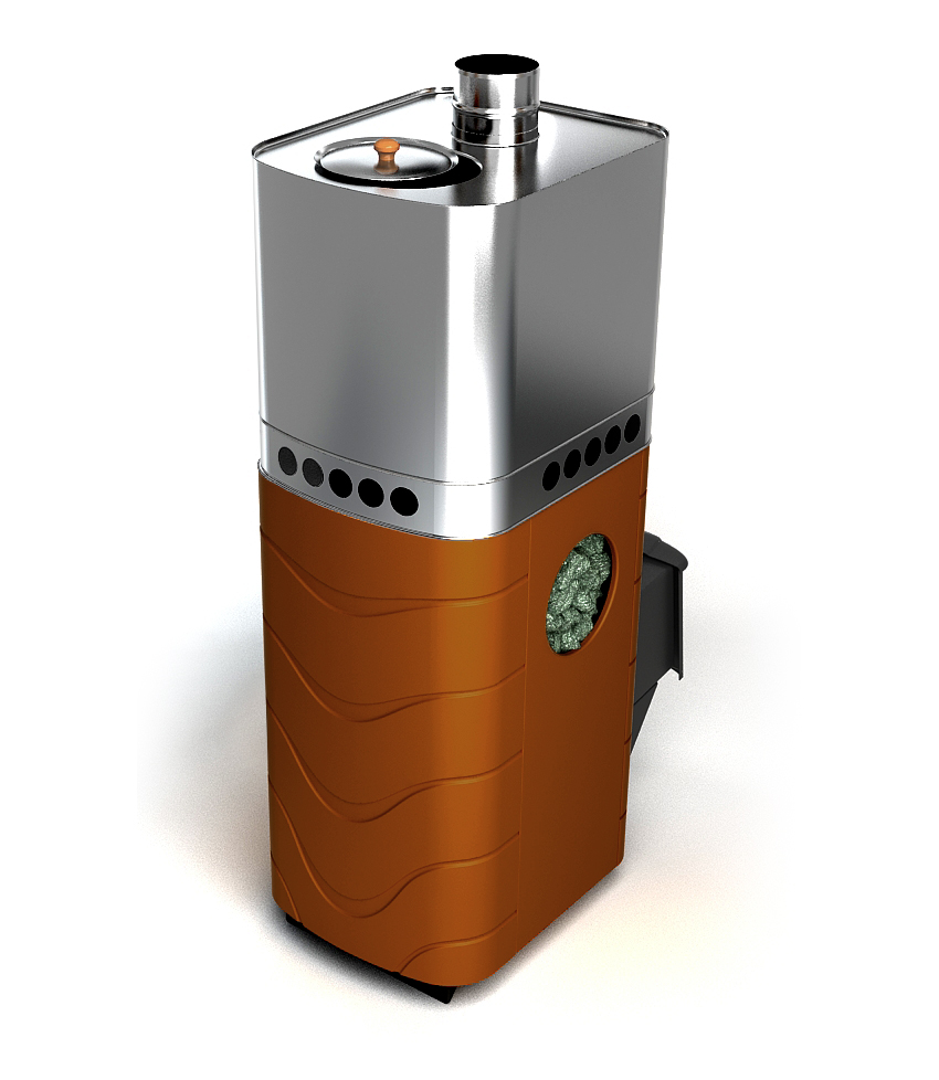 Усовершенствованная схема прохождения конвекционного потока предотвращает преждевременное закипание воды в баке. Кроме того, через конвекционные отверстия удобно организовать слив горячей воды как спереди, так справа или слева. При необходимости бак можно снять.Печь сохранила закрытую каменку, которая находится внутри топки и максимально прогревается пламенем со всех сторон. Конструкция печи обеспечивает доступ к каменке с любой стороны.