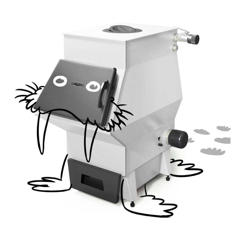 Также стоит отметить, новую большую наклонную топочную дверцу, в которую удобно засыпать уголь прямо из ведра. Уголь не просыпается мимо котла и не оседает на внутренних стенках тоннеля, поскольку в нем отсутствуют горизонтальные поверхности.